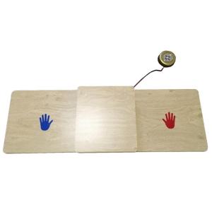 Сдающий норматив по отжиманию принимает положение - упор лежа с опорой левой руки на левый, а правой руки на правый край станка. При касании контактной платформы, расположенной по центру станка грудью зажигается сигнальный светодиод. Таким образом и судья и участник видят касание контактной платформы. Так осуществляется контроль фазы сгибания рук при отжимании.